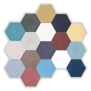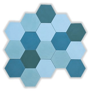 7. Carrelage uni hexagonal bleu en grès cérame de 10 mm d’épaisseur