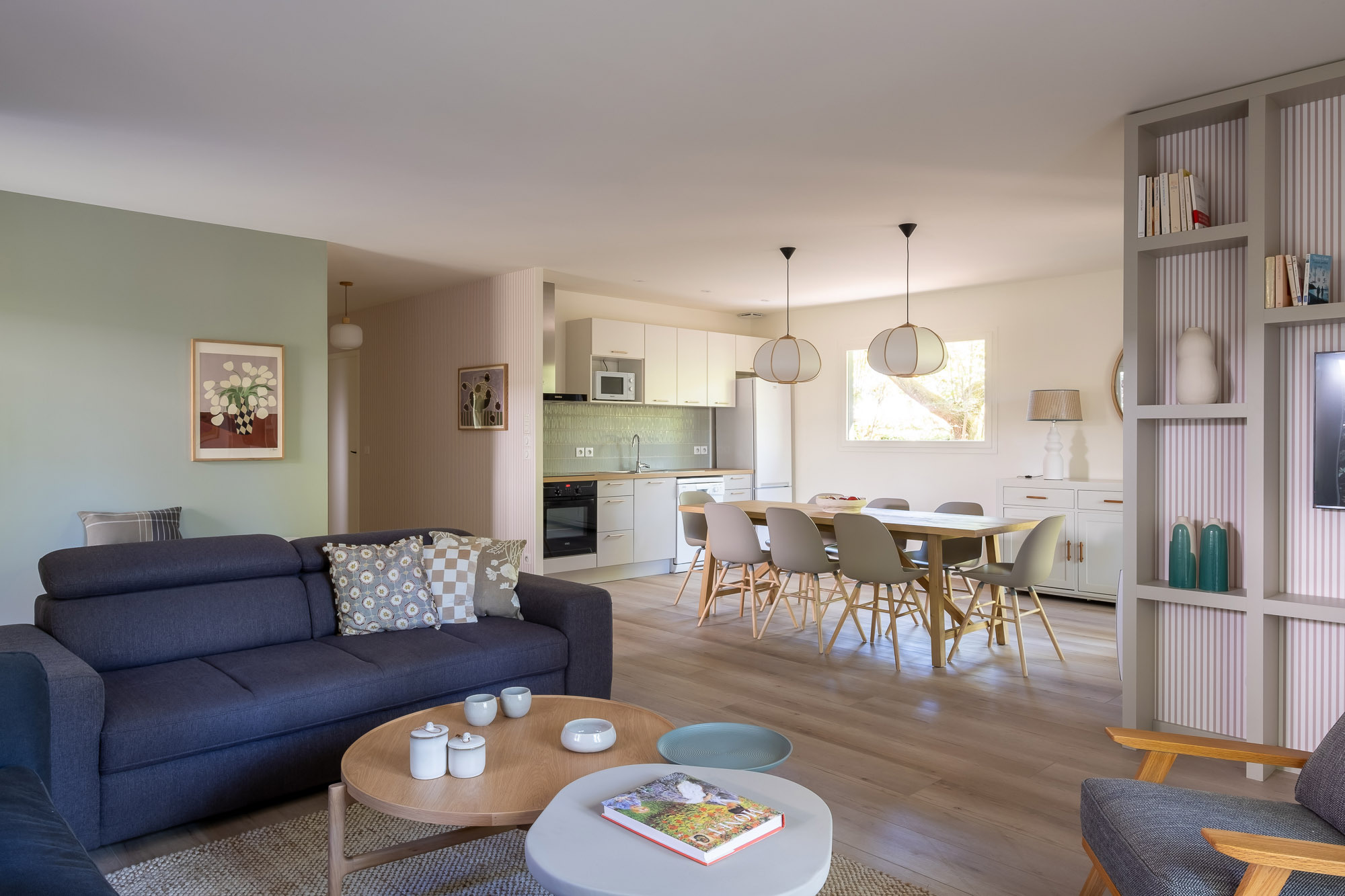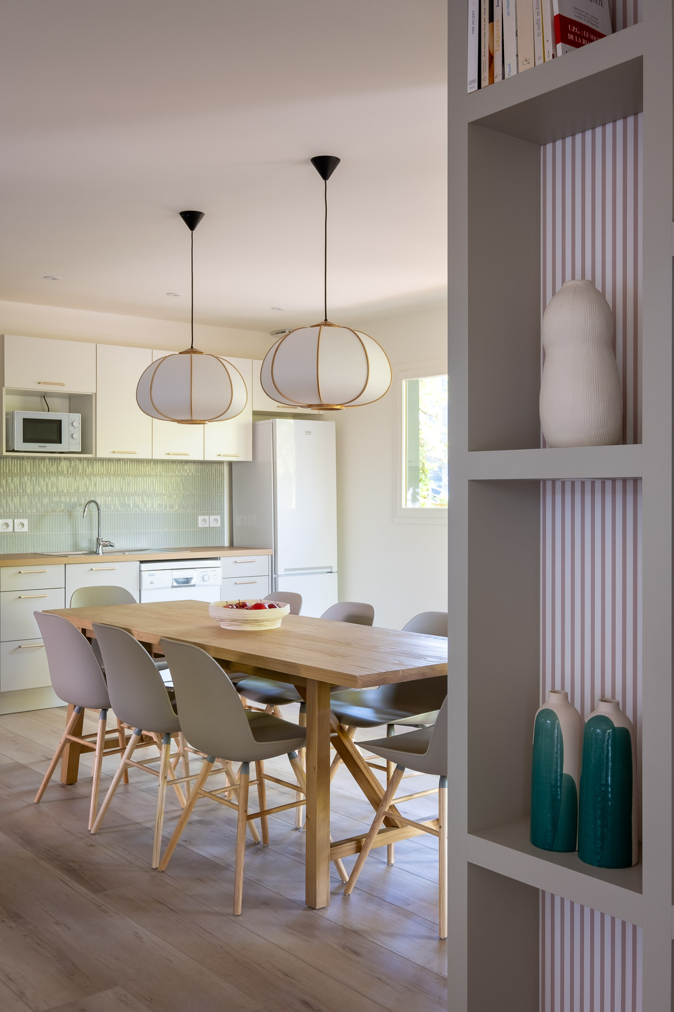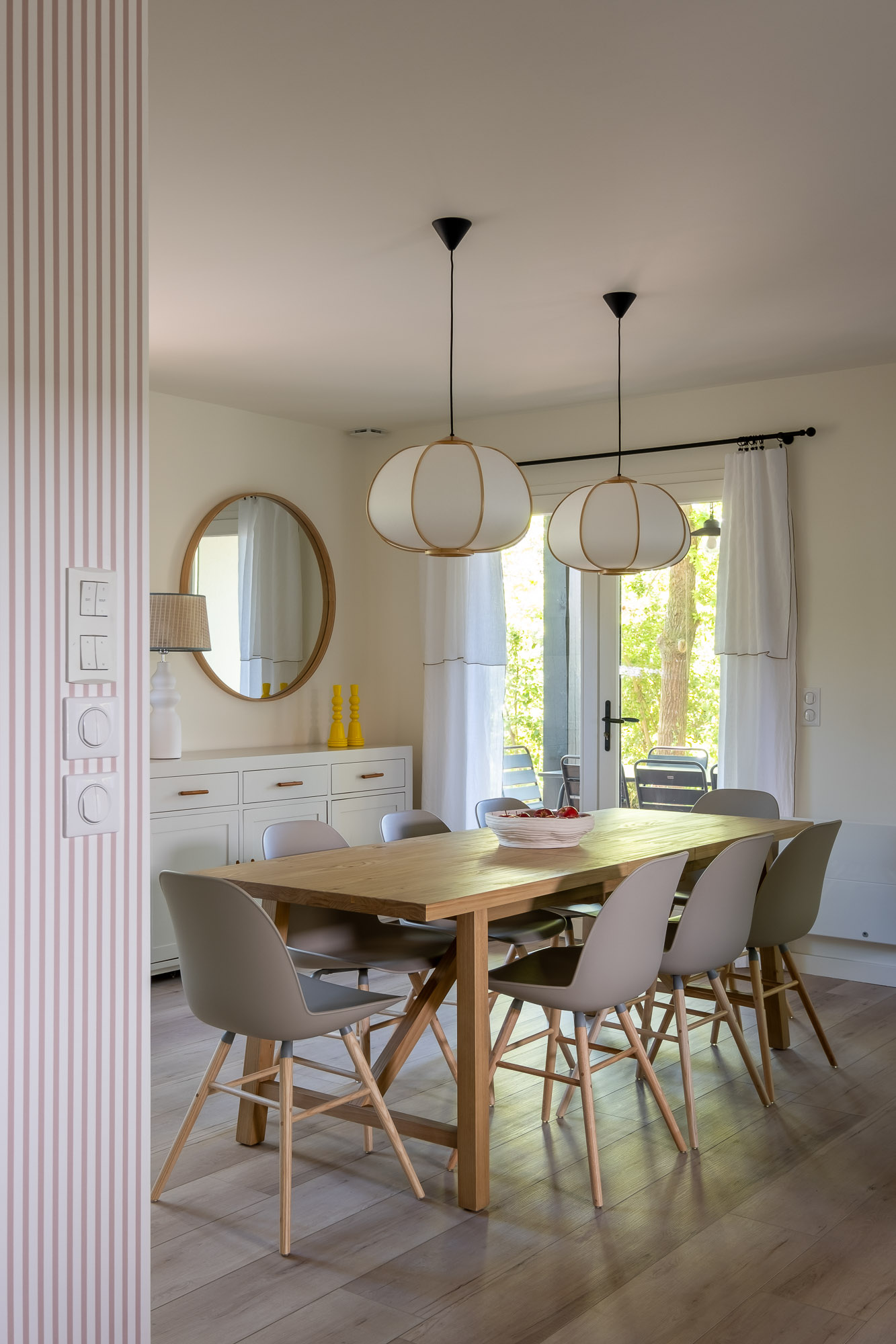 Je vous pésente cette belle maison sous les pins, de style japonais, et nature. Les lignes épurées, les touches de verdure apportent une sérénité incomparable à chaque pièce. Les couleurs, les beignes, les verts et les élééments décoratifs simples créent une atmosphère de calme et de contemplation.