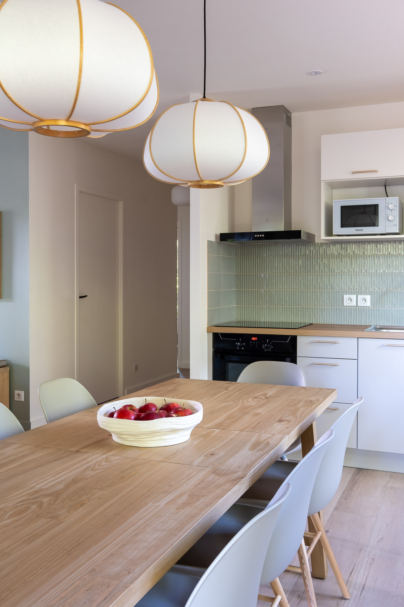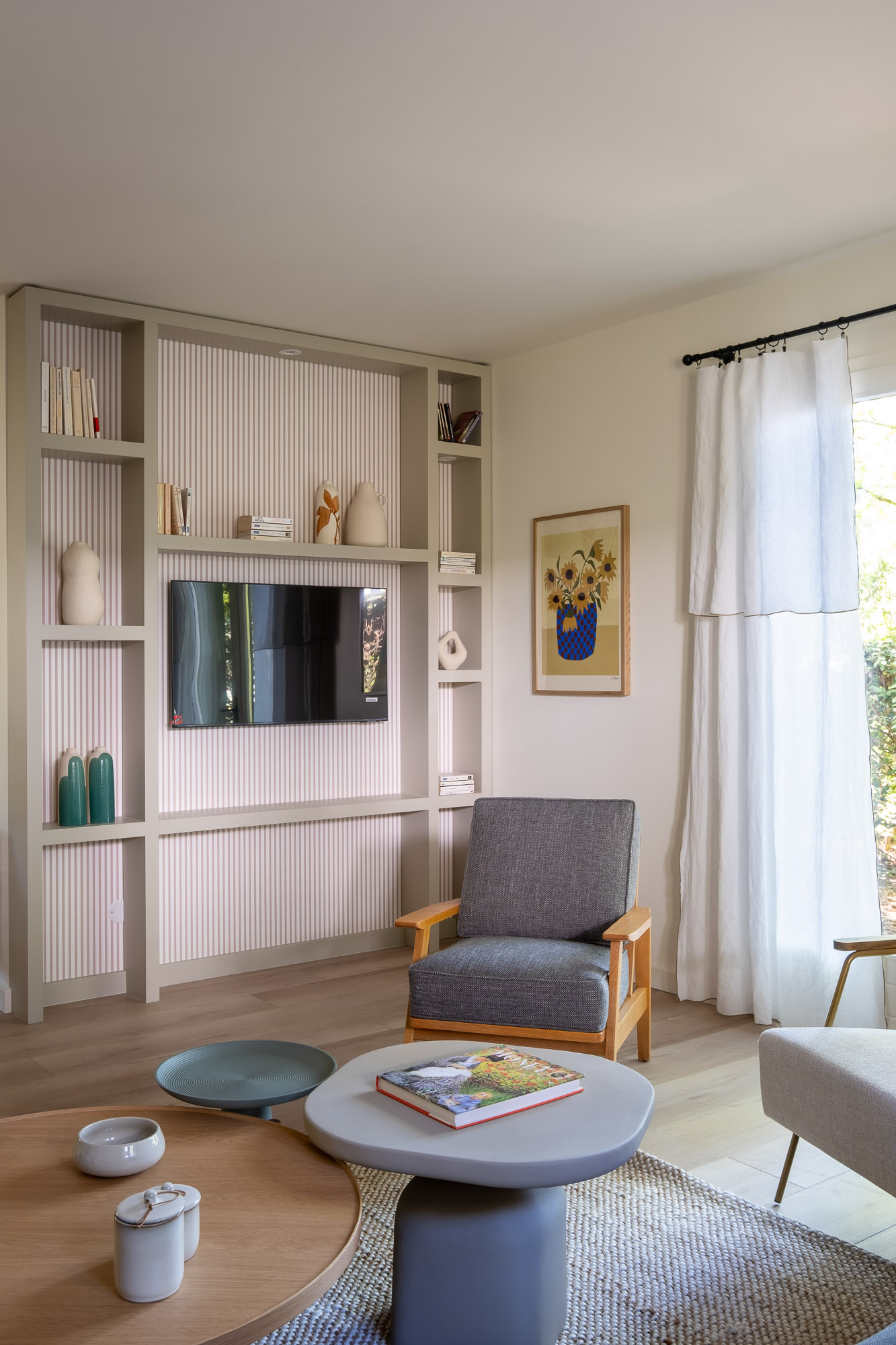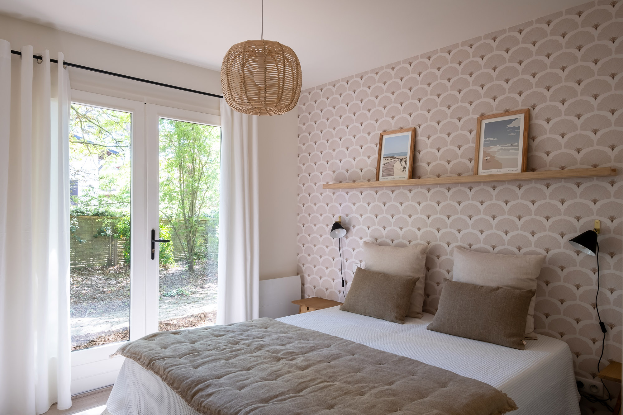 Je vous pésente cette belle maison sous les pins, de style japonais, et nature. Les lignes épurées, les touches de verdure apportent une sérénité incomparable à chaque pièce. Les couleurs, les beignes, les verts et les élééments décoratifs simples créent une atmosphère de calme et de contemplation.